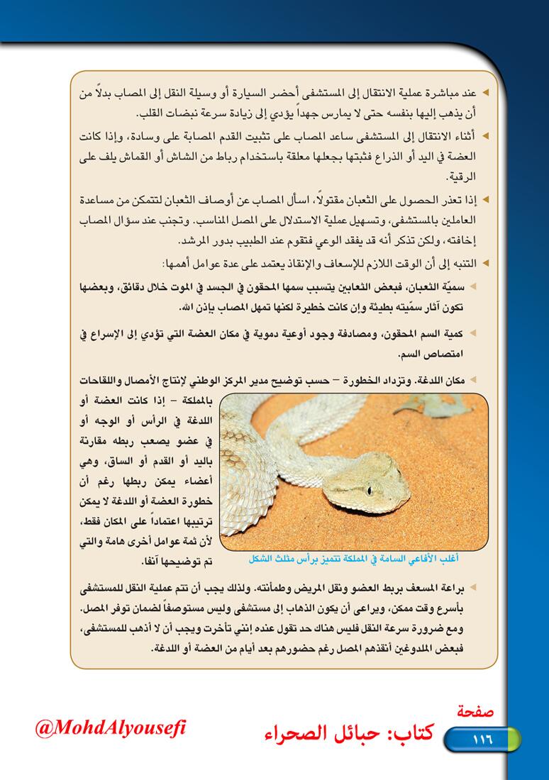 معالجة التعرض لعضات الثعابين وسمومها، وأود هنا الإشارة إلى ما يلي: